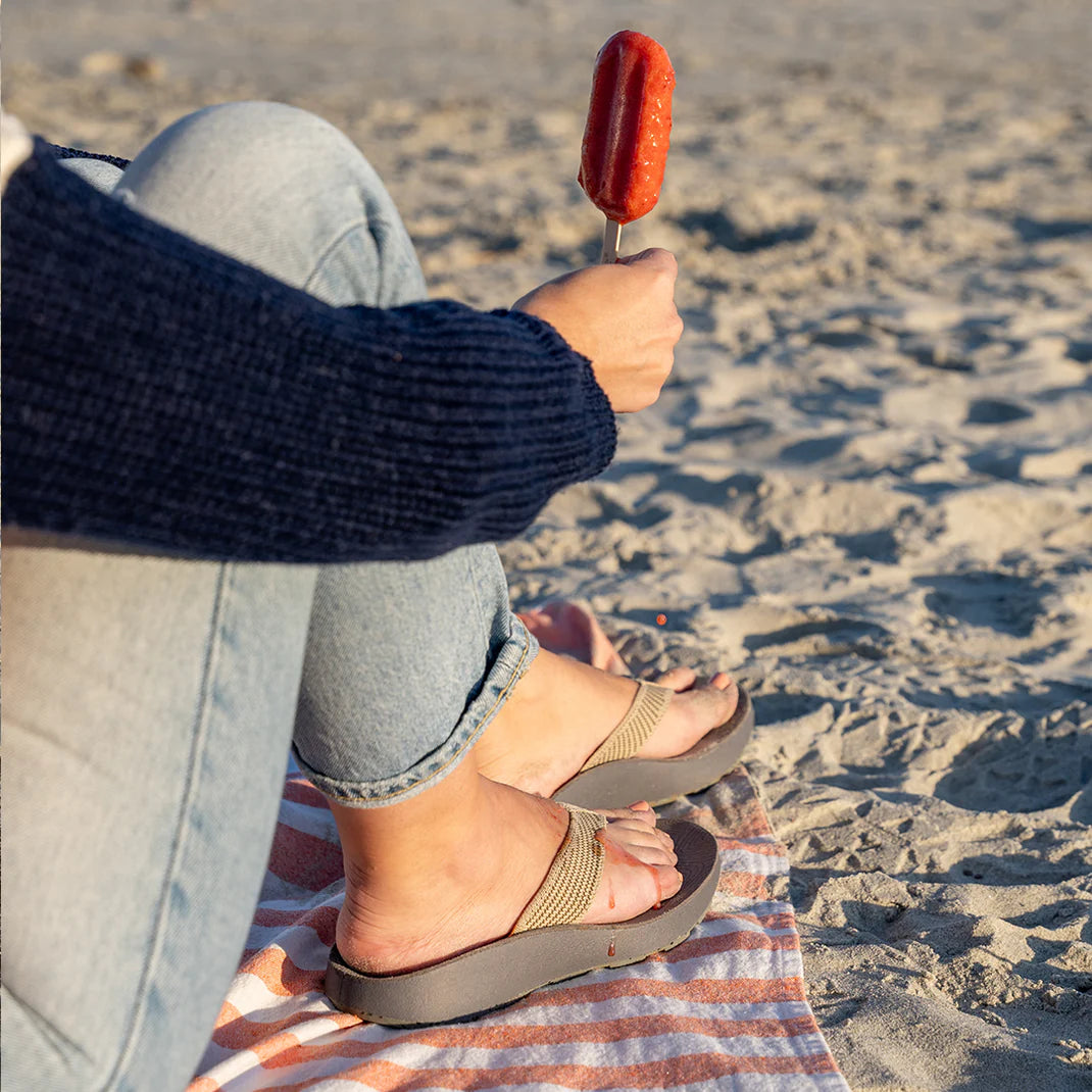 Slip into an elevated flip experience that supports your feet, unlike throw-away flip flops. The anatomical arch support and cushioned footbed bring everything up a notch. Finally, flips that you’ll want to wear beyond the trek from the car to the beach for years to come.